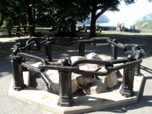 –Sterling Ironworks in Sterling Lake, New York. It operated a blast furnace and forges that opened in 1736. It is said Sterling was commissioned to do the “Great Chain” across the Hudson, and they used several other forgers and foundries, like Ringwood, to help with the massive project. The last blast furnace there was shut down in 1891. A reconstructed blast furnace and mine structures still exist at Sterling Lake.