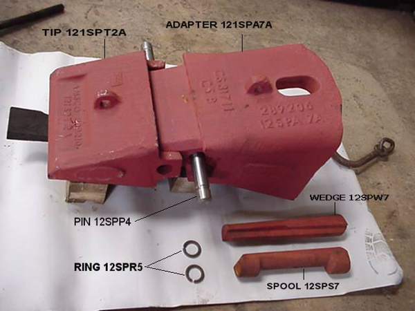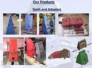- Dragline bucket teeth, adapters, bases, connecting hardware