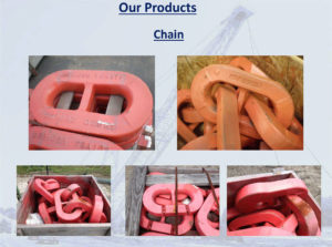 - Chain made of integrally cast links with cross sections from 1.5 to 5.5 inches used on hoist, dump, and drag applications